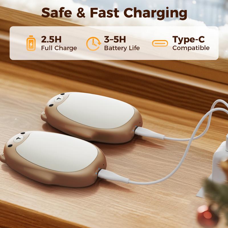 🎯 Makes an ideal gift for loved ones too. The set includes two bear hand warmers, Type-C cable, storage bag, and user manual.
